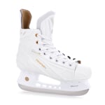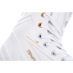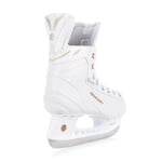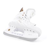Hokejové brusle TEMPISH VOLT-S LADY jsou vhodné pro aktivní hokejové hráčky amatérských soutěží. Skelet brusle má jedinečnou konstrukci, je vyroben z jednoho kusu kompozitního odolného plastu, zajišťuje proměnnou tvrdost pro optimální fixaci nohy. Skelet je velmi lehký, přitom pevný a odolný. Dobře ochrání nohu proti nárazům puku a hokejek. Skelet je velmi dobře anatomicky tvarovaný, zejména v oblasti Achillovy šlachy a kotníků. Skelet poskytuje velmi dobrou podporu a ochranu kotníků. O pohodlí se starají pěnové výstelky, zejména v oblasti kotníků a Achillovy šlachy a anatomická vkládací vložka, která kvalitně zafixuje chodidlo v brusli. Vnitřní výstelka je přizpůsobena dámské anatomii nohy přidáním 2 mm materiálu. Jazyk má anatomicky tvar, je středně silně vyztužený, skládaný ze dvou dílů, čímž zaručuje komfortní obemknutí nártu, kotníku a spodní holeně. Vnitřní materiál z mikrovlákna (CAMBRA brushed nylon), díky kterému noha v brusli neklouže, dodává jistotu pro bruslaře. Také efektivně odvádí vlhkost a dobře vysychá po skončení bruslení. Brusle je osazena kvalitním nožem z nerezavějící oceli.