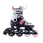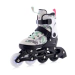 Pohodlný systém nastavení velikosti pomocí tlačítka na boční straně skeletu umožňuje rozsah ve 4 velikostech, takže brusle rostou s dítětem a vydrží několik sezón. Konstrukce skeletu i podvozku je navržena s důrazem na odolnost, ergonomii a stabilitu při jízdě.