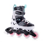 Velikost lze snadno nastavit pomocí bočního tlačítka – brusle tak roste s dítětem, konkrétně v rozsahu čtyř velikostí.