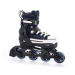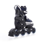 Dětské roztahovací brusle určené pro rekreační a kondiční bruslení. Střední a vysoká zátěž, pro začínající a pokročilé bruslaře. Brusle mají jednoduchý a pohodlný systém zvětšení velikosti tlačítkem na boční straně skeletu. Brusli lze nastavit na 4 velikosti.