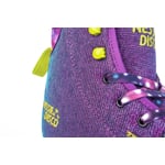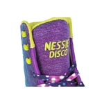 TEMPISH NESSIE DISCO je jedinečný model quadové brusle pro dívky či ženy, které chtějí svítit na tanečním parketu, nebo zaujmou na ulici, stezce, nebo ve skate parku! Název DISCO přesně koresponduje s designem a účelem použití této brusle. Na botě je použita speciální pevná tkanina s perleťovým efektem v kombinaci s efektem, kdy se mění barva brusle dle úhlu pod kterým brusli sledujete. Vnitřní konstrukce boty je komfortní s pohodlnou bandáží na exponovaných místech v oblasti kolem kotníků. Tkaničky jsou potištěny digitální technologií a jejich design ještě více podtrhuje atraktivní design celé brusle! Ve kvalitních, průhledných PU kolečkách jsou umístěny třpytky, které se pod dopadem světla ještě více třpytí. Součástí balení jsou extra navíc tkaničky ve zářivé žluto-zelené barvě pro individuální doladění tohoto modelu. Pokud někdo hledá brusle s atraktivním designem a přitom kvalitní a komfortní, tohle je nejlepší volba. Brusle jsou vhodné jak pro začátečníky, tak pro pokročilé bruslaře. Brusle je při jízdě velmi pohodlná, neboť v zadní části v místě Achillovi šlachy je vybavena měkkou výstelkou pro umožnění volnějšího pohybu chodidla v botě. Bota je zdobená na vnější straně a na jazyku výšivkou.
