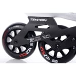 Podvozek je vyrobený technologii CNC. Uchycení podvozku centrálními šrouby s možností podvozek vychýlit mimo osu – pro ideální nastavení dle stylu bruslení a rozdílné anatomické stavby chodidla (celé nohy) uživatele v přední i zadní části. Podvozek je velmi lehký, ale tuhý. Osky jsou šroubované vždy z pravé strany na obou bruslích – zajišťují bezpečnost – není možné odtažení za jízdy.
