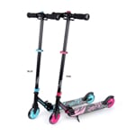 Dětská skládací koloběžka se zadní blatníkovou brzdou. Koloběžka je lehká, snadno přenosná. Snížená úroveň stupátka nad povrchem. Hlavové složení se závitem. Řídítka jsou opatřena objímkou pro zmírnění otřesů.