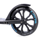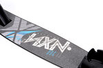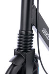 Pro hladkou jízdu i na nerovném povrchu je koloběžka vybavena předním odpružením, zatímco snížená deska pomáhá s efektivnějším odrážením a menší únavou nohou. Brzdění je možné dvěma způsoby – přítlačnou páčkovou brzdou na zadní kolo (s nastavitelnou páčkou i pro kratší prsty) nebo klasickou nášlapnou brzdou přes zadní blatník.