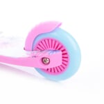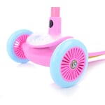 Dvě přední PU kolečka o rozměrech 120×24 mm zajišťují výbornou stabilitu a snadné vedení směru. Zadní kolečko o velikosti 100×24 mm doplňuje pevnou konstrukci a přispívá k plynulé jízdě. Kvalitní ložiska ABEC-7 zaručují hladký a tichý chod, takže si děti mohou užívat komfortní svezení doma i venku.