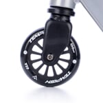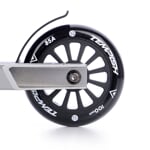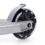 Koloběžka VENTUS 100 je určená k freestylu, je osazena kolečky o průměru 100 mm, tvrdost 85A. Hlavové složení: závitové. Kompresní systém: závitový + 3 šroubová objímka. Na vyztužených řídítkách z kvalitní slitiny hliníku o rozměru 580 x 500 mm (22,8” x 19,7”) se nachází 120 mm gripy z TPR. Deska je dvou profilová. Vidlice je ocelová.