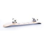 Design boardu je inspirován old-school instinkty, tudíž jen dřevo, jednoduchý černý design, raw hliníkové trucky a bílá kolečka s decentním potiskem.