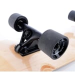 Podvozek je vybaven reversed 6" trucky s matnou povrchovou úpravou, které umožňují precizní zatáčení a hladkou jízdu. Bushingy z SHR 92A zaručují vynikající tlumení nárazů, zatímco měkké 3 mm gumové riser pady přidávají extra komfort a snižují vibrace.