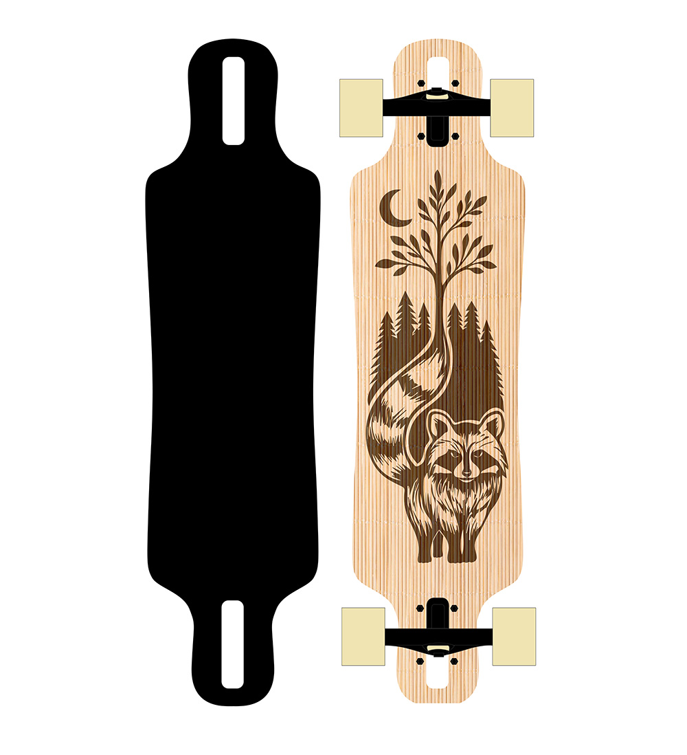 Deska má konkávní tvar, který pomáhá udržet nohy pevně na místě a zvyšuje kontrolu při zatáčení. Vyrobena je z kombinace kanadského javoru (vrchní a spodní vrstva) a ruského javoru (střed), což zajišťuje optimální poměr tuhosti a pružnosti.