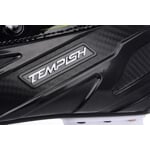 Hokejové brusle TEMPISH VOLT-PRO jsou vhodné pro pokročilé aktivní hokejové hráče amatérských soutěží. Skelet brusle má jedinečnou konstrukci, je vyroben z jednoho kusu kompozitního odolného plastu, zajišťuje proměnnou tvrdost pro optimální fixaci nohy. Skelet je velmi lehký, přitom pevný a odolný. Dobře ochrání nohu proti nárazům puku a hokejek. Skelet je velmi dobře anatomicky tvarovaný, zejména v oblasti Achillovy šlachy a kotníků. Skelet poskytuje velmi dobrou podporu a ochranu kotníků. O pohodlí se starají pěnové výstelky, zejména v oblasti kotníků a Achillovy šlachy a anatomická vkládací vložka s latexovým potiskem, která kvalitně zafixuje chodidlo v brusli a zabraňuje klouzání nohy po vložce. Jazyk má anatomický tvar, je středně silně vyztužený s plastovým všitým plátem pro větší ochranu proti nárazům hokejek a puků. Jazyk je skládaný ze dvou dílů, čímž zaručuje komfortní obemknutí nártu, kotníku a spodní holeně. Brusle je vybavena voskovanými tkaničkami, díky kterým tkaničky velice dobře drží, lépe se utahují a nenasakují téměř žádnou vlhkost. Vnitřní materiál z mikrovlákna (CAMBRA brushed nylon), díky kterému noha v brusli neklouže, dodává jistotu pro bruslaře. Také efektivně odvádí vlhkost a dobře vysychá po skončení bruslení. Brusle je osazena kvalitním nožem z nerezavějící oceli. Holder je k brusli přichycený 10 ocelovými nýty a 4 měděnými nýty.