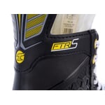 Hokejové brusle TEMPISH FTR-5 jsou vhodné pro aktivní hokejové hráče amatérských soutěží. Skelet brusle má jedinečnou konstrukci, je vyroben z jednoho kusu kompozitního odolného plastu, zajišťuje proměnnou tvrdost pro optimální fixaci nohy. Skelet je velmi lehký, přitom pevný a odolný. Dobře ochrání nohu proti nárazům puku a hokejek. Skelet je velmi dobře anatomicky tvarovaný, zejména v oblasti Achillovy šlachy a kotníků. Skelet poskytuje velmi dobrou podporu a ochranu kotníků. O pohodlí se starají pěnové výstelky, zejména v oblasti kotníků a Achillovy šlachy a anatomická vkládací vložka, která kvalitně zafixuje chodidlo v brusli. Jazyk má anatomicky tvar, je středně silně vyztužený, skládaný ze dvou dílů, čímž zaručuje komfortní obemknutí nártu, kotníku a spodní holeně. Vnitřní materiál z mikrovlákna (CAMBRA brushed nylon), díky kterému noha v brusli neklouže, dodává jistotu pro bruslaře. Také efektivně odvádí vlhkost a dobře vysychá po skončení bruslení. Brusle je osazena kvalitním nožem z nerezavějící oceli.