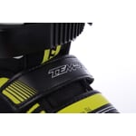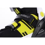 Velkou výhodou tohoto modelu je absence tkaniček, které jsou nahrazeny páskem na suchý zip, díky kterému je velmi jednoduché a rychlé chodidlo v brusli dostatečně zpevnit.