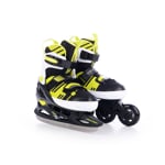 Dětské roztahovací brusle se speciální duální konstrukcí pro celoroční rekreační bruslení. Konstrukční systém umožňuje záměnu zimních bruslí za podvozek s kolečky. Jednoduchým povolením dvou šroubů přeměníte zimní brusle na kolečkové inline brusle a naopak.