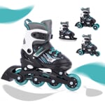 FunActiv TRILO 4in1 jsou univerzální roztahovací dětské brusle, které díky chytré konstrukci nabídnou hned čtyři různé varianty použití. Jediný model tak dětem umožní bruslit na ledě, jezdit na inlinech, učit se stabilitu na širokém podvozku a vyzkoušet i styl jízdy na quad kolečkových bruslích – bez nutnosti kupovat více párů.