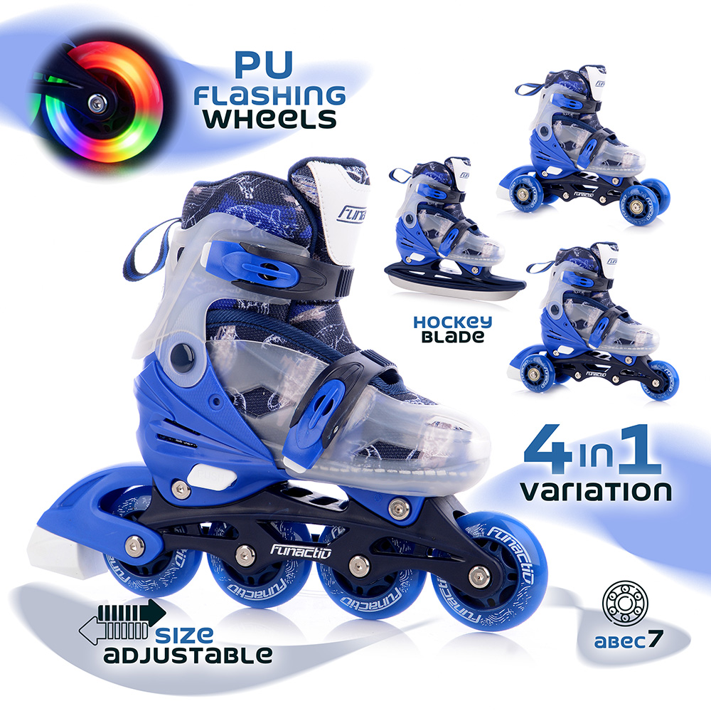 Model FunActiv ADAPT LED 4in1 jsou univerzální roztahovací brusle pro děti, které nabízí maximální variabilitu použití – od inline bruslení přes stabilnější „quad“ konfiguraci až po zimní bruslení na ledě. Ideální volba pro všechny, kdo chtějí jedny brusle na celý rok.