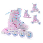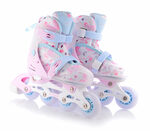 Model FunActiv ADAPT LED GIRL 4in1 jsou univerzální roztahovací brusle pro děti, které nabízí maximální variabilitu použití – od inline bruslení přes stabilnější „quad“ konfiguraci až po zimní bruslení na ledě. Ideální volba pro všechny, kdo chtějí jedny brusle na celý rok.