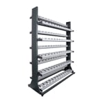 Oboustranný regál na 70 párů zimních bruslí pro instalaci do prostoru.