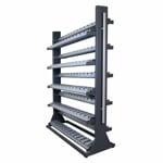 Oboustranný regál na 80 párů zimních bruslí pro instalaci do prostoru.
