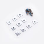 Sada obsahuje 10 háčků a 20 šroubů pro uchycení přezky bruslí. Šroub M4x6. Zápustná čtyřhranná matice má šířku 13,2 mm, další rozměry viz nákres.