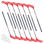 FLOW - zvýhodněná sada florbalek určena pro amatérské, rekreační a začínající hráče. Set obsahuje 12 florbalek FLOW (8xL+4xP) + 6ks míčků Trix. Můžete si zvolit délku 100, 95 cm. Florbalová hůl s oficiální certifikací IFF je ideální pro hráče nižších soutěží, rekreační a začínající hráče. Žerď hole ze sklolaminátových vláken poskládaná z několika vrstev navzájem přesně geometricky orientovaných, aby bylo dosaženo ideálních vlastností žerdě co do pružnosti a pevnosti. Je středně tvrdá (flex 28mm) a dostatečně pružná zároveň. Hůl se skvěle vede a vykazuje perfektní vlastnosti jak při střelách, tak při technické manipulaci. Profil držení hole je klasický kulatý, zužující se k čepeli. Pro uchopení použita standardní omotávka SCORE, která perfektně sedí v ruce. Hůl je osazena čepelí Twenty. Čepel je lehce vyhnutá a vykrojená.